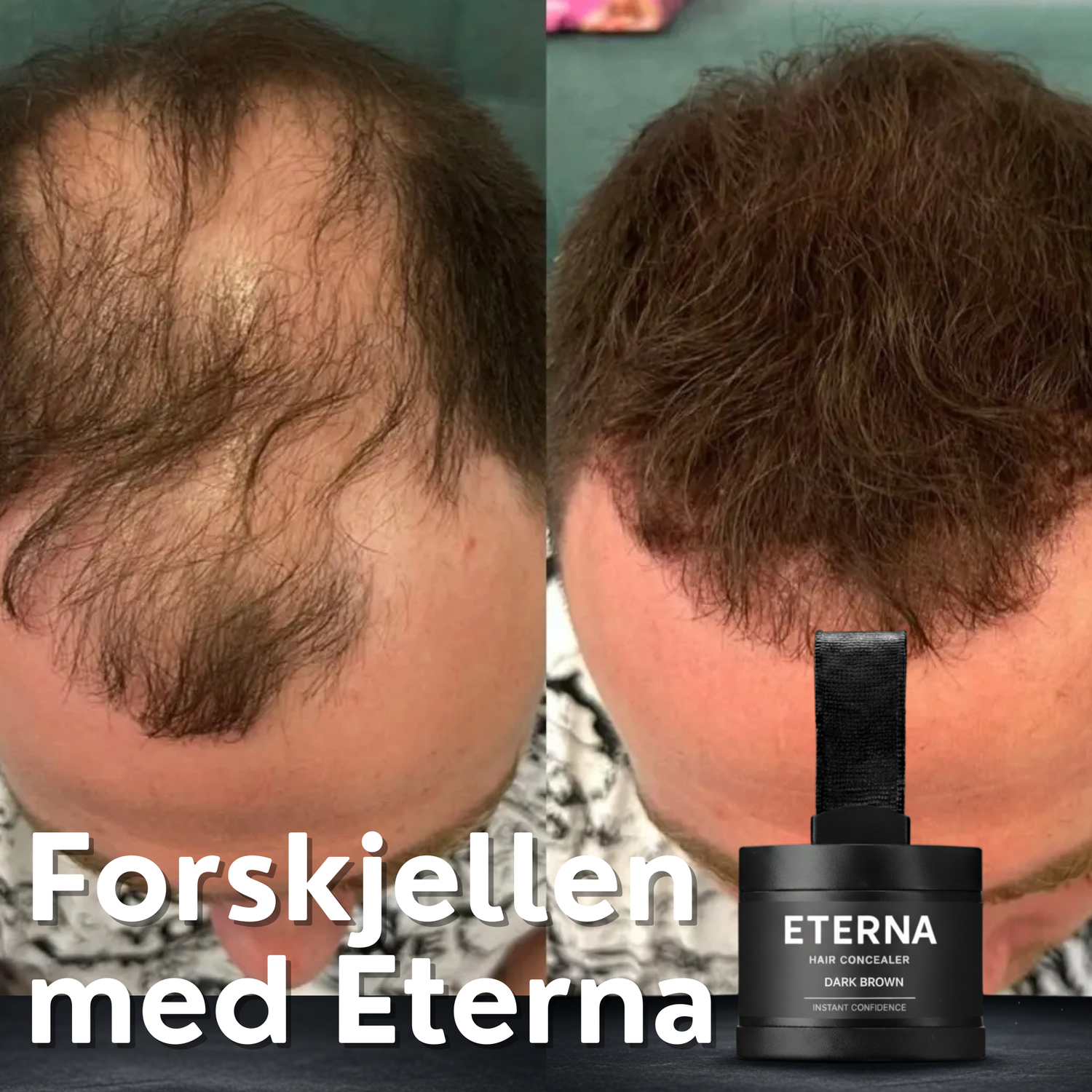“Vurderte hårtransplantasjon, men begynte med Eterna først. For min del holder det mer enn nok, og lommeboka er ganske fornøyd den også.”
