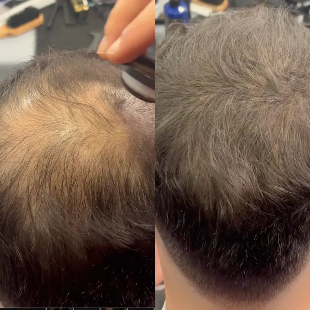Selv områder som virker helt bare, har fortsatt ultrafine hår som Eterna fester seg til. Pigmentene dekker mellomrommene og skaper en jevn, realistisk tetthet som smelter sømløst inn med resten av håret ditt.